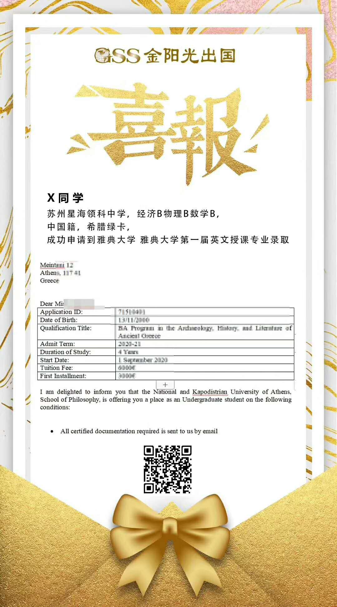 喜報(bào) | 恭喜金陽(yáng)光學(xué)子喜獲雅典大學(xué)Offer