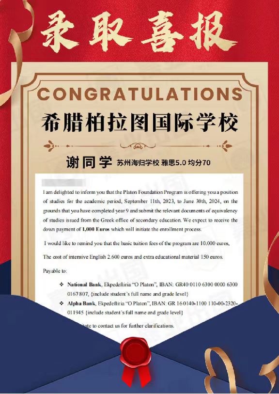 成功案例 | 希臘柏拉圖國(guó)際學(xué)校Offer