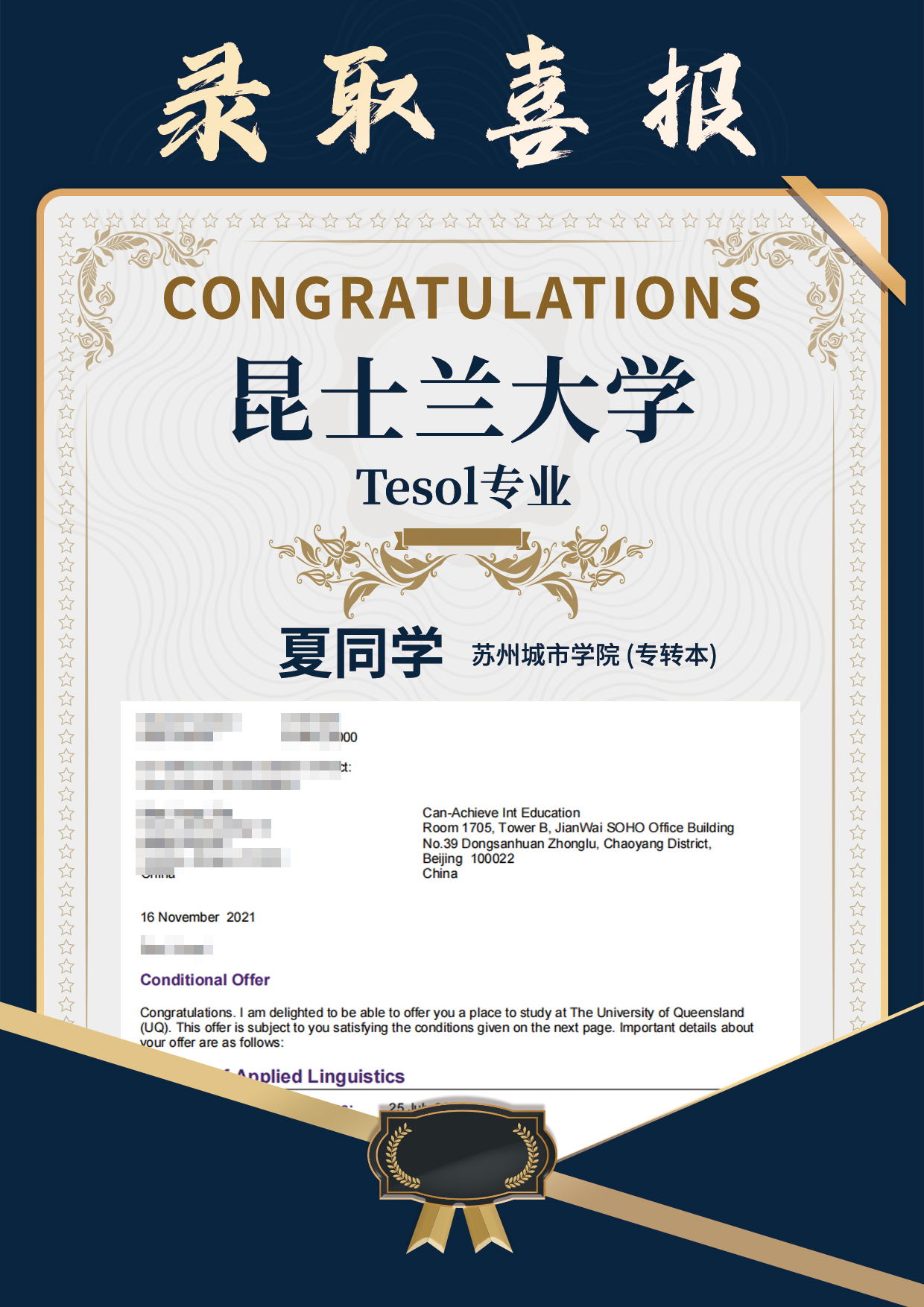 昆士蘭大學offer