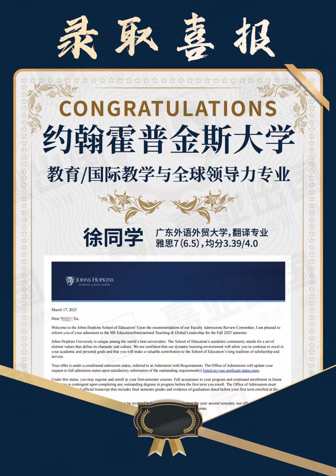 約翰霍普金斯大學Offer