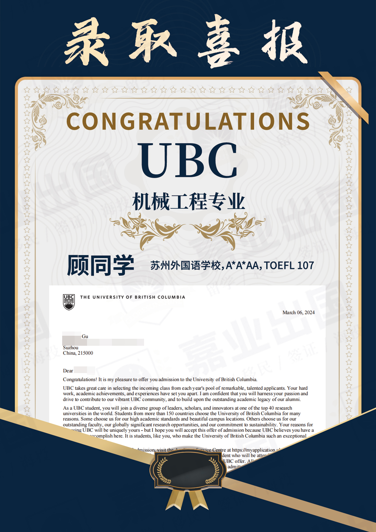 不列顛哥倫比亞大學Offer