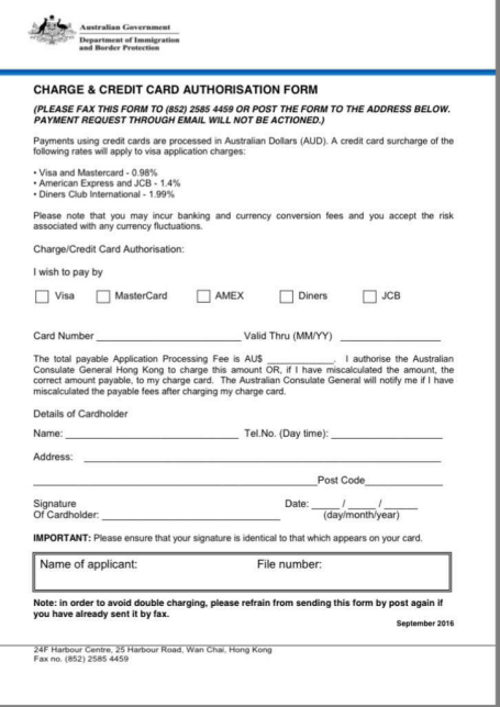 語言費是通過信用卡授權支付的,所以申請人需要填寫一個信用卡授權表格,如下