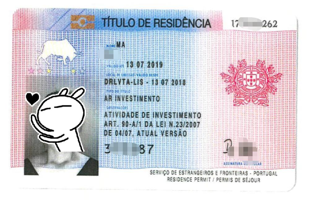 制卡時間:2018年9月17日收到全家1年居留卡