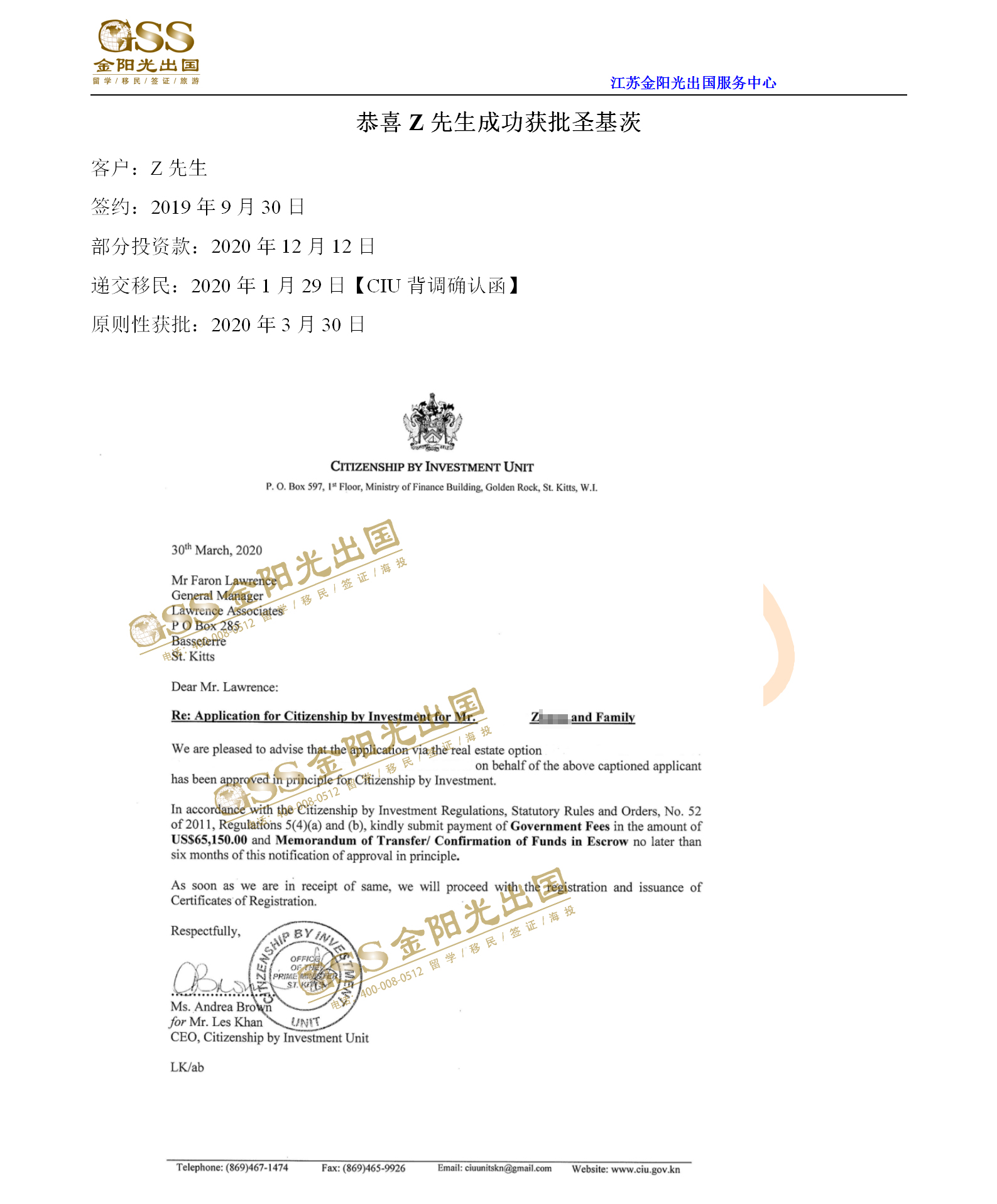 成功案例 | 恭喜Z先生圣基茨成功獲批