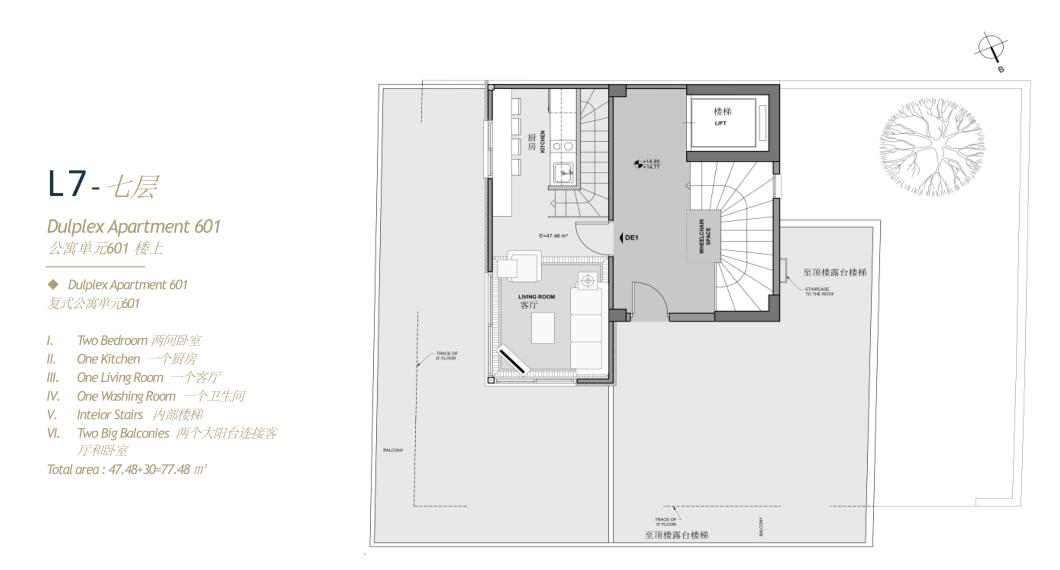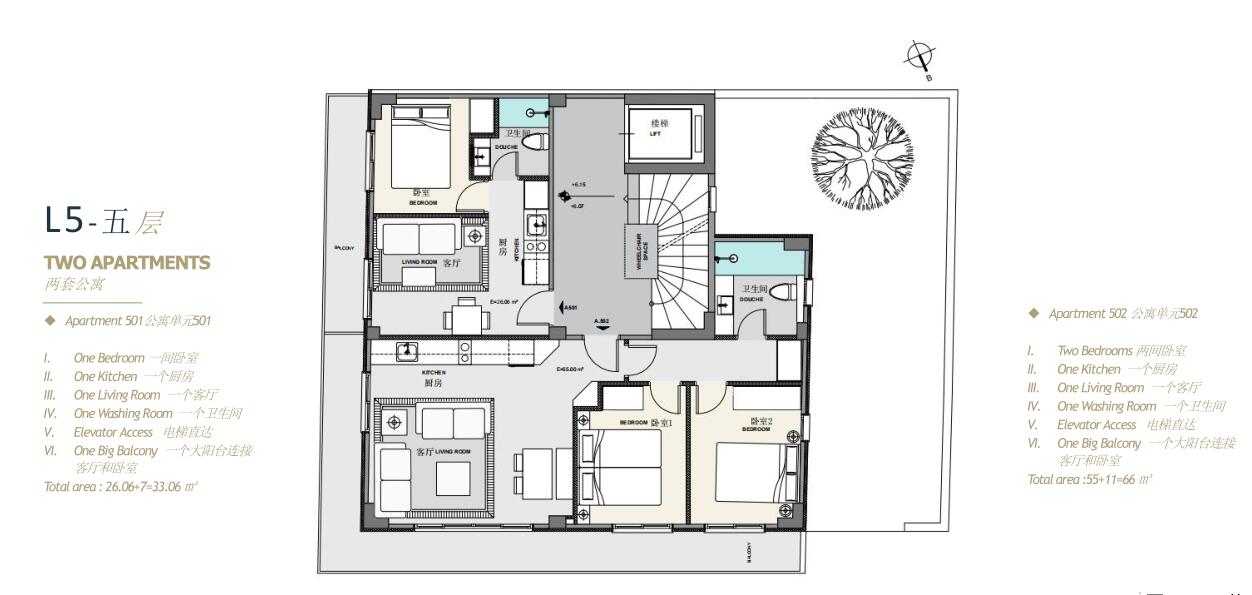 建筑總共有6個自然層,GF為入口電梯廳,1F-4F各設計了3套公寓,5F由于規范的要求,設計了一套獨立的公寓。整棟建筑總共設計了13個單元,每個單元的面積均為25平左右的一室一廳戶型,兩開間采光,并贈送了一個大開間的陽臺。每個單元內部均設計有廚房,獨立衛浴,獨立的臥室和一個客廳。進入空間的設計上我們選擇了一個相對私密的位置做為公寓的出入口,配合小灌木和地燈的設計,營造一個私密、安靜、又不失尊貴的進入體驗。