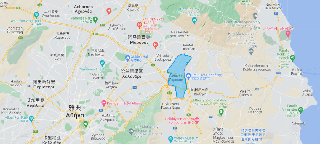 第二:Gerakas位于南北兩座大山之間海拔在100米左右地勢平坦開闊、視野良好西接Vrilissia、哈蘭德里、圣帕拉斯凱維北鄰Penteli。交通便利、生活氣息濃厚是一個典型的中產(chǎn)階級聚居區(qū)。