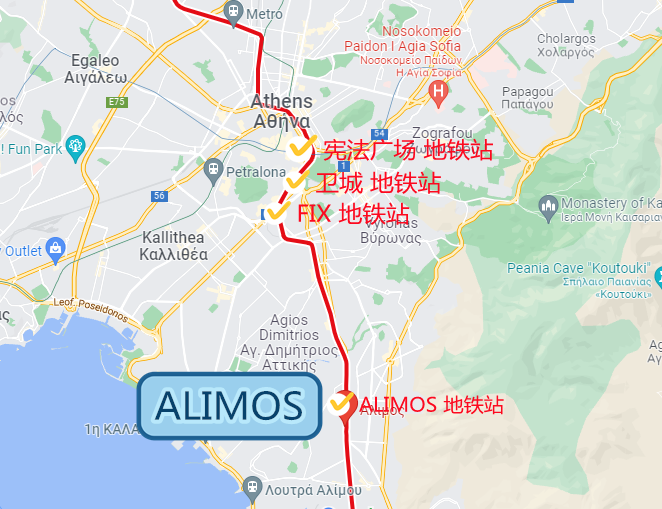 Alimos 區域交通便利,沿海的波塞冬大道和Vouliagmanis大道連接雅典市中心和南部海濱,Alimos地鐵站直達憲法廣場。
