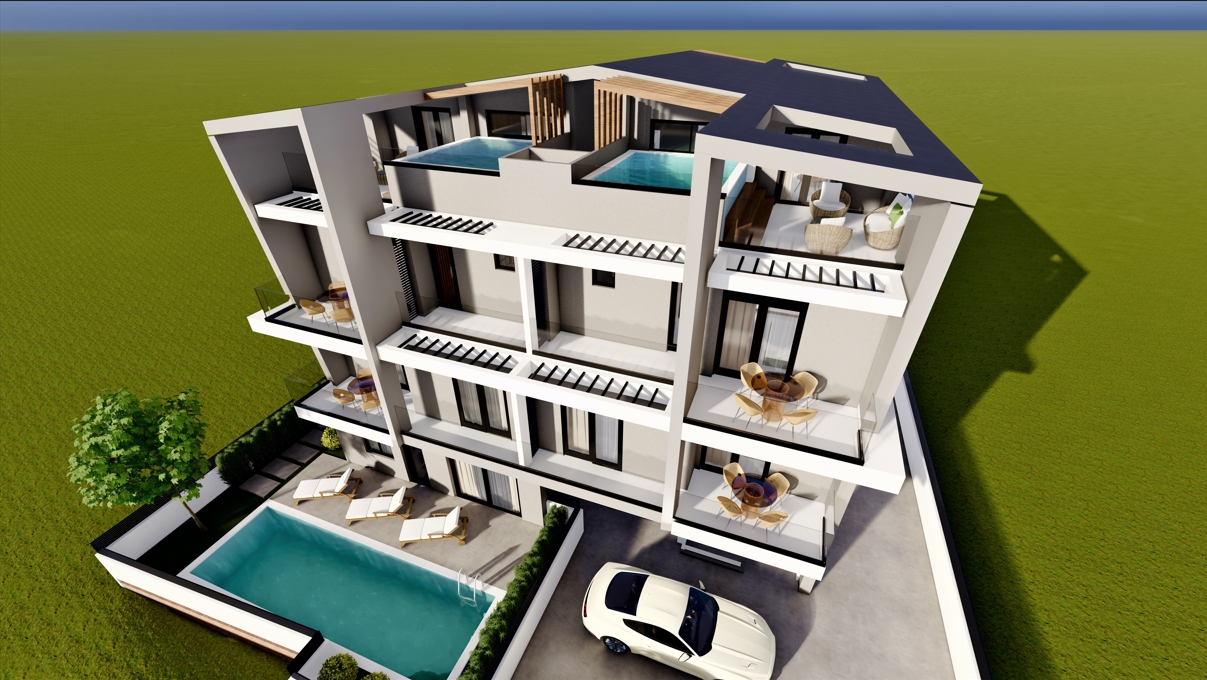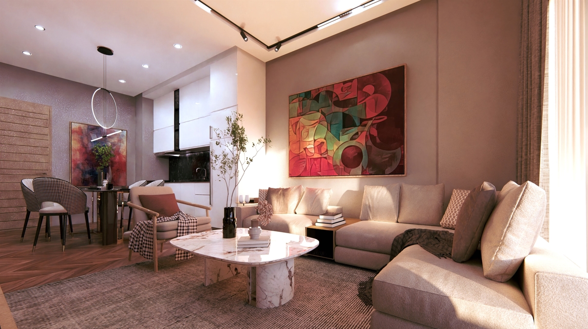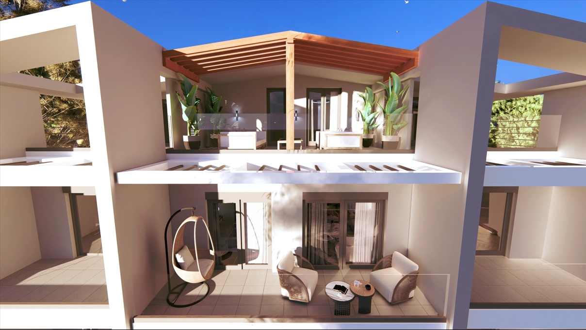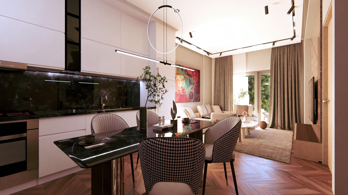 項目入戶為高質量景觀、花園和停車位,共規劃7套公寓,配備7個停車位,不同戶型滿足不同需求: